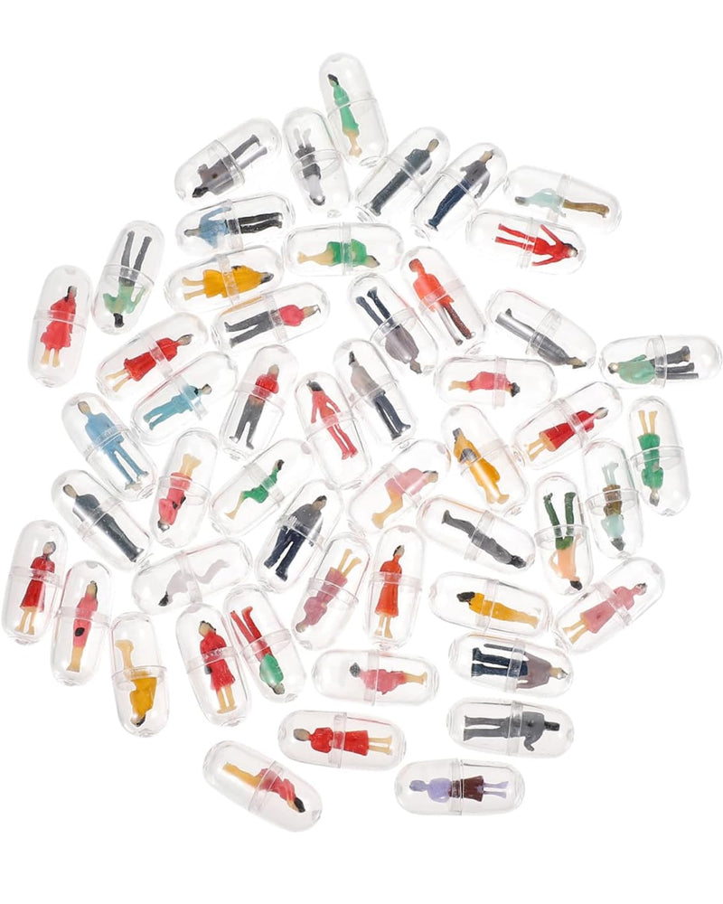Tiny mini people inside a pill. Just a lil human in a clear plastic capsule. Teenty tiny!!!